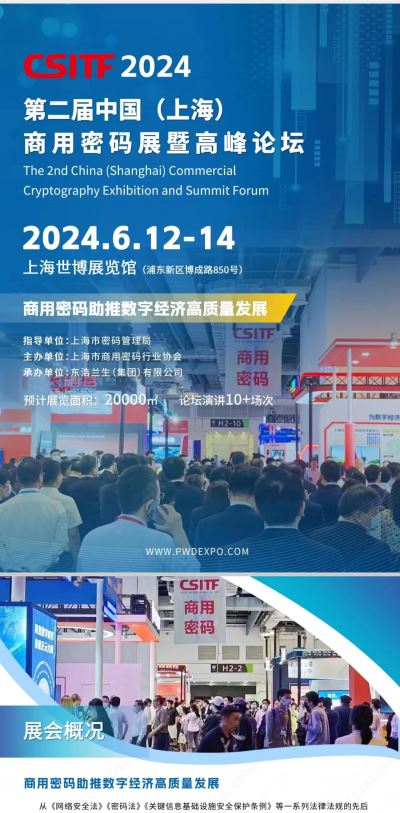 【展会概况】 商用密码助推数字经济高质量发展 从《网络安全法》《密码法》《关键信息基础设施安全保护条例》等一系列法律法规的先后出台,到商用密码产业引导政策的陆续颁布,都向商用密码产业的快速发展释放了重大利好。国务院常务会议审议通过《商用密码管理条例(修订草案)》,再次明确,进一步规范商用密码应用和管理,督促平台企业依法履行用户密码保护责任,确保个人隐私、商业秘密和政府敏感数据的安全。 受数字化社会经济新模式的不断带动,商用密码在政务、金融、电信等重要领域的应用需求快速增长,在智慧城市、云计算、车联网、工业互联网等新兴领域也发挥越来越重要的作用。密码工作向着智能化的新时代跨越,商用密码产业得到了广泛的市场空间和发展机遇。 密码作为保障网络空间安全最有效、最可靠、最经济的关键核心技术和基础支撑,将加速向数字经济社会的各领域渗透融合,与党的二十大报告中提出的“加快建设网络强国、数字中国”、“加强个人信息保护”的时代强音形成了同频共振。